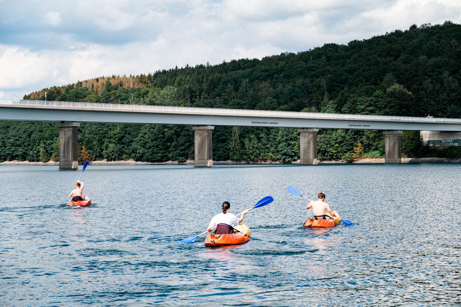 Warum nicht gleich im 2er Team die Bigge erkunden. Unsere 2er Kajaks sind die längere Version von Blue Wave. Genauso stabile Ausführung und genauso bequem. Rückenlehnen machen auch längere Touren komfortabel.